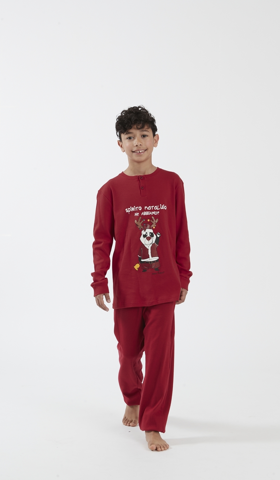 Pigiama girocollo kid Natale in 100% cotone per un comfort eccellente e un divertente stile festivo.